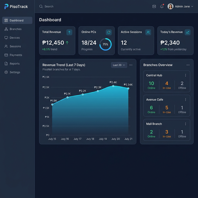 “Before PisoTrack, I had to visit all 5 branches just to check earnings. Now I see everything on my phone. Revenue went up 30% because I can spot idle PCs immediately.”